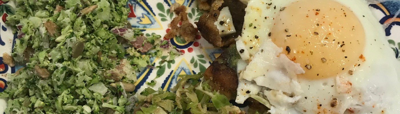 • Fried eggs over Schnitzel with a side of broccoli or brussels sprouts salad